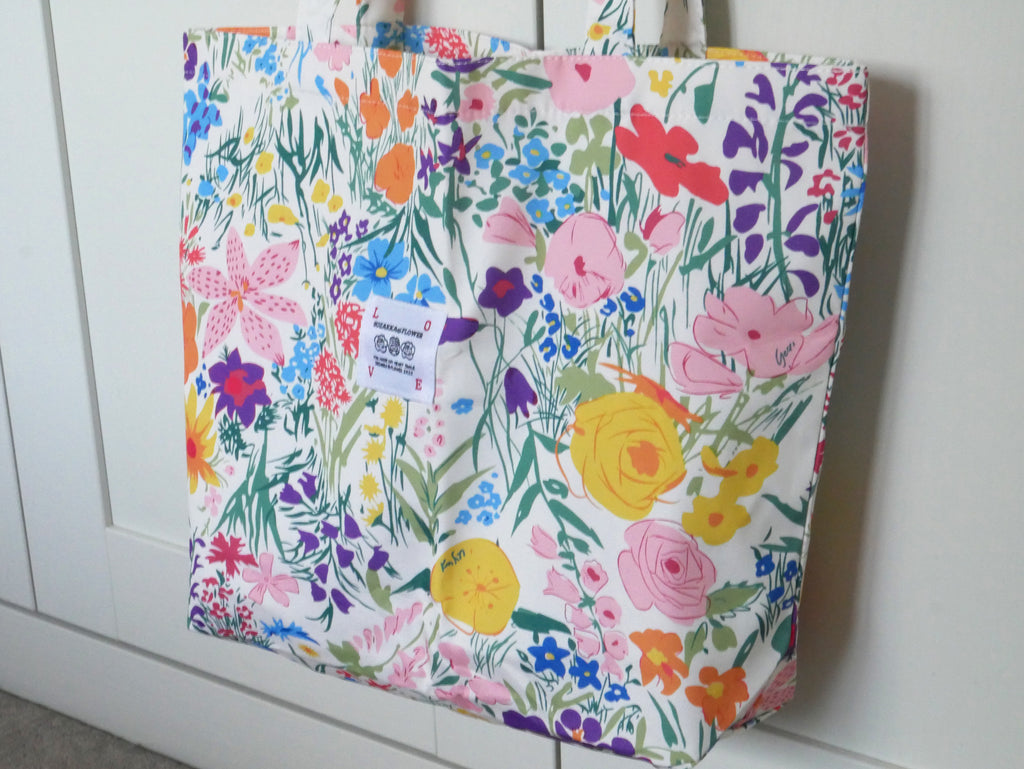 Transform your shopping experience with this stylish and practical reusable tote shopping bag adorned with a vibrant floral pattern.