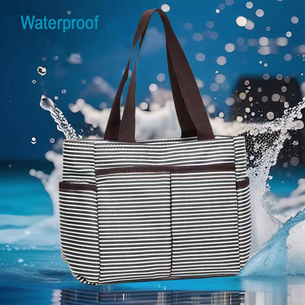 Large Waterproof Tote Bag - Black Stripe