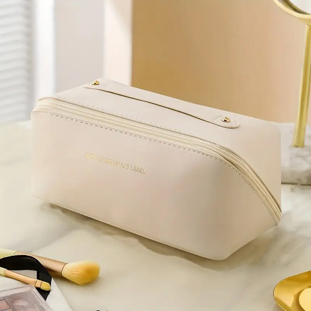 This stylish travel makeup bag is expertly crafted from premium PU leather, featuring exquisite stitching for a refined finish. Designed to provide a soft, luxurious feel, it also offers waterproof protection to keep your cosmetics safe and secure.